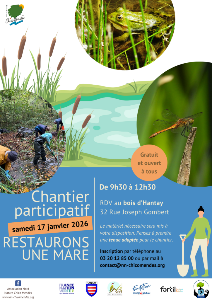 Nous sommes ravis de vous convier à notre chantier de restauration de mare pour offrir un espace naturel et accueillant pour la biodiversité.
